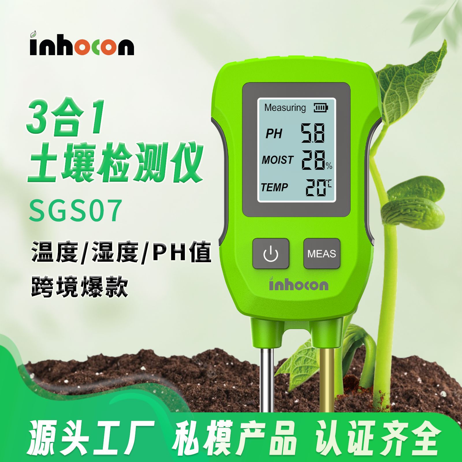 Detektor tanah tiga-dalam-satu layar tester pH suhu kelembaban pH presisi tinggi jarum ganda