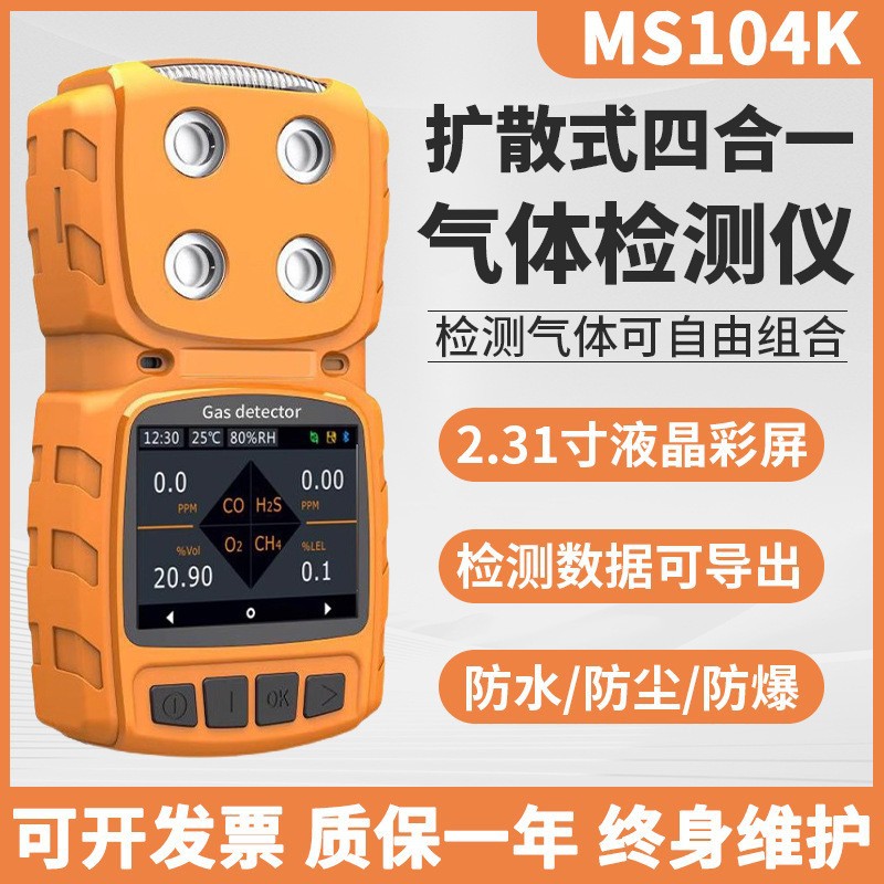 Yiyuntian MS104K 4-in-1 Detektor Gas Oksigen Hidrogen Sulfida Karbon Monoksida Gas Yang Mudah Terbakar
