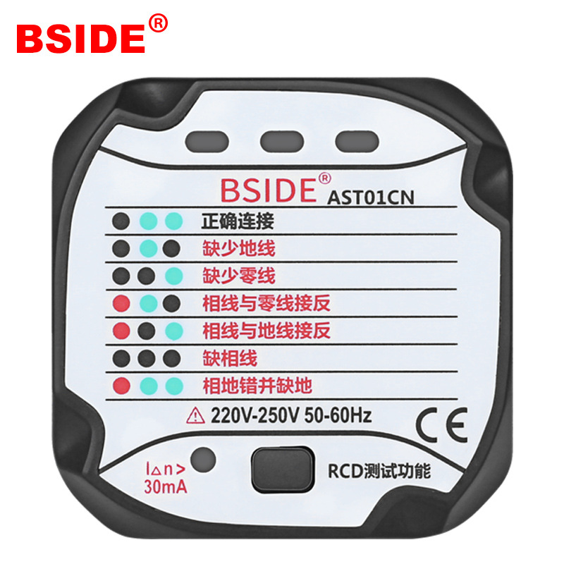 AST01 penguji soket profesional pendeteksi fase elektroskop polaritas daya standar Inggris standar Eropa standar Amerika BSIDE