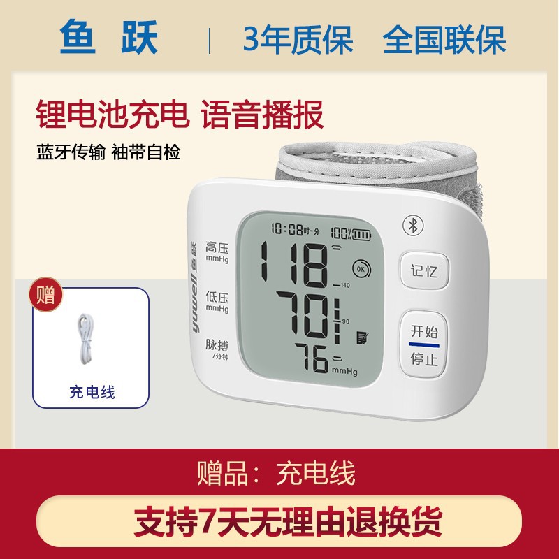 Yuyue alat ukur tekanan darah, alat ukur tekanan darah pergelangan tangan, alat pengukuran tekanan otomatis, pengisian suara rumah tangga