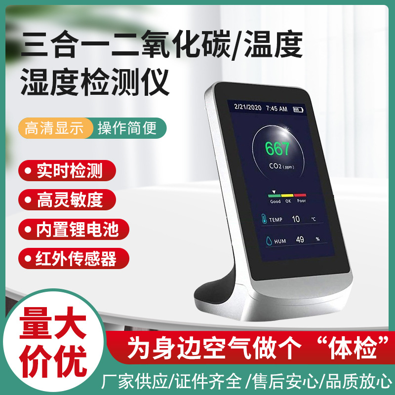 Pasokan karbon dioksida perdagangan asing deteksi CO2, suhu dan kelembaban versi bahasa Inggris detektor kualitas udara