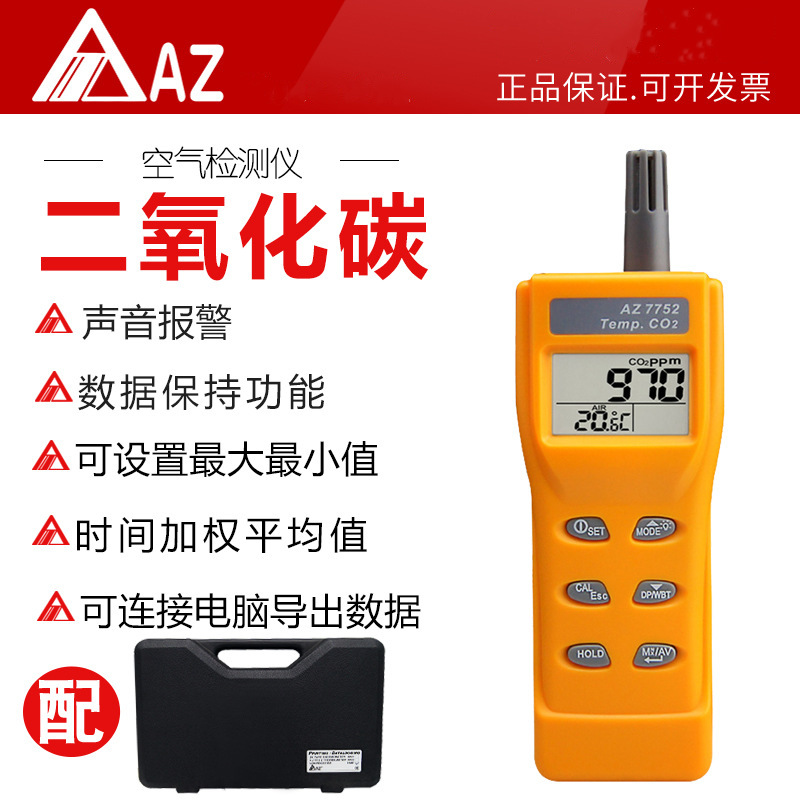 Taiwan Hengxin AZ7752 detektor karbon dioksida genggam detektor konsentrasi gas CO2 dengan suhu