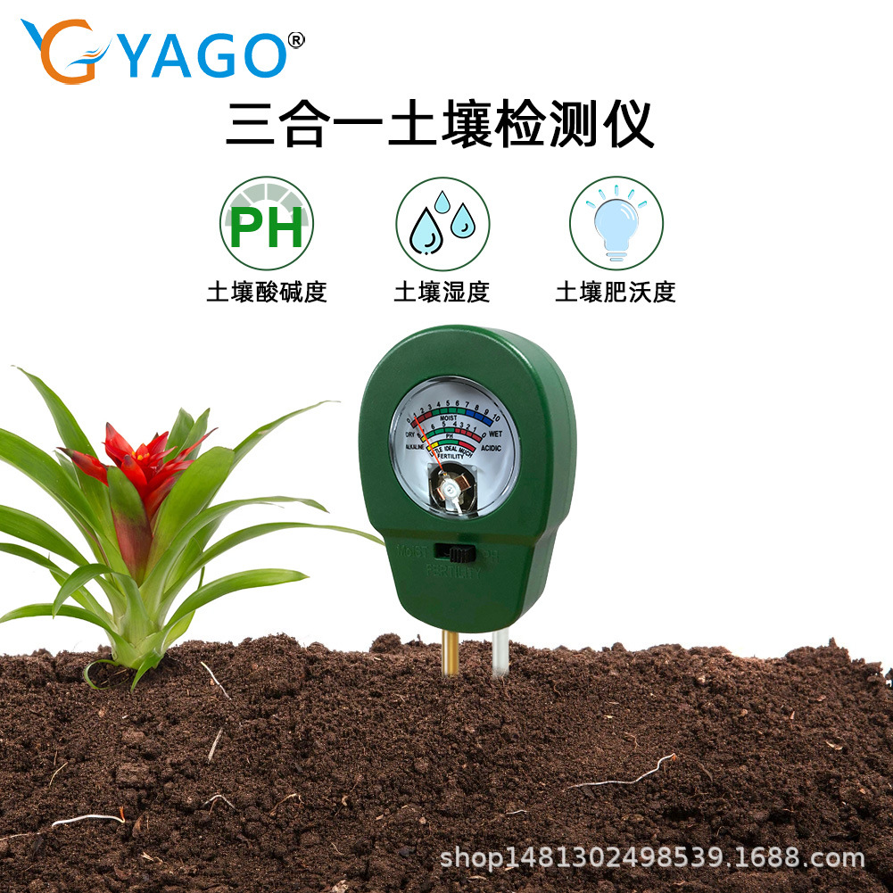 Detektor nilai pH tiga dalam satu tanah, penguji tanam berkebun kesuburan tanah kelembapan pH tanah