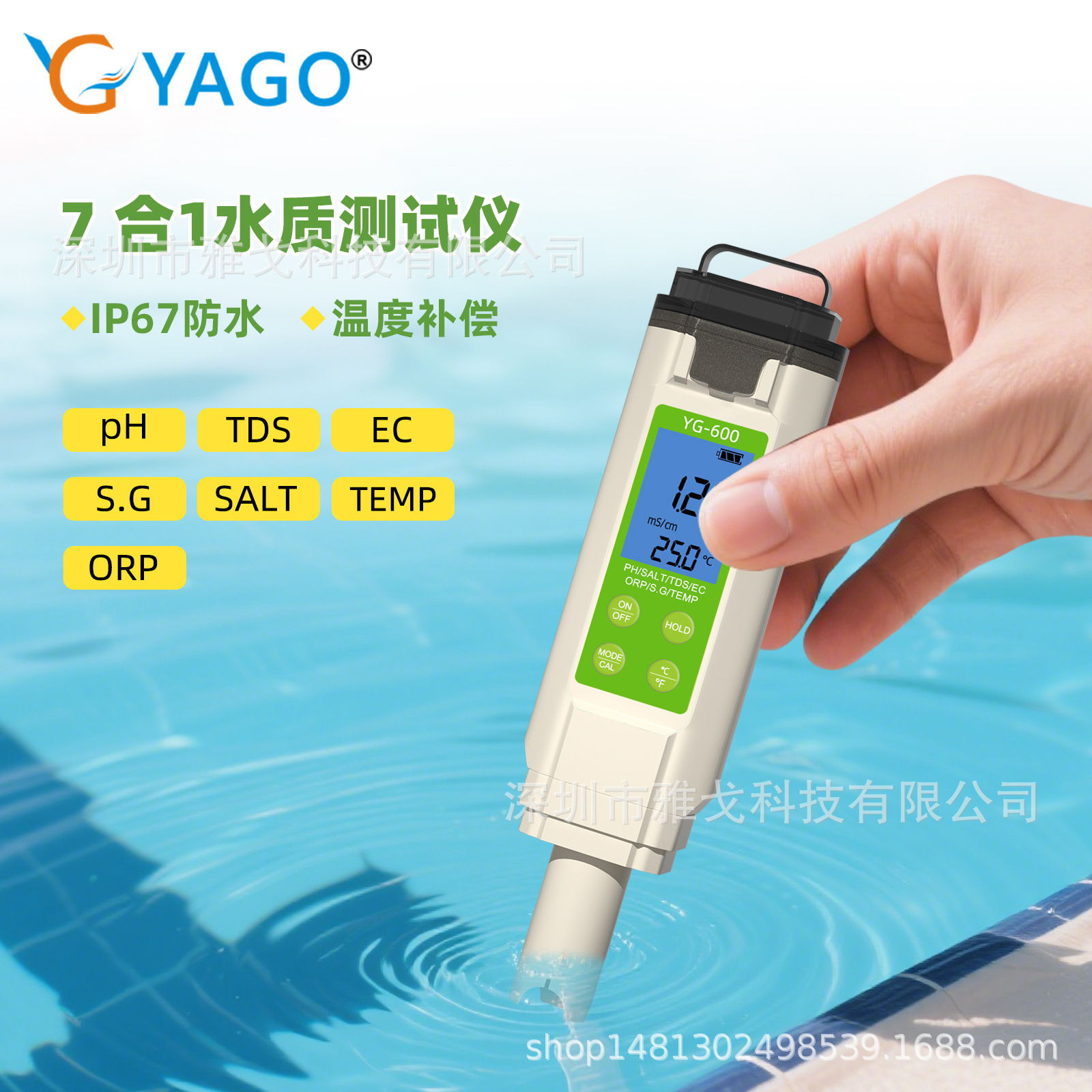 Detektor kualitas air 7 in 1 PH meter EC/TDS/SALT salinitas ORP suhu SG tangki ikan kolam renang tester kualitas air