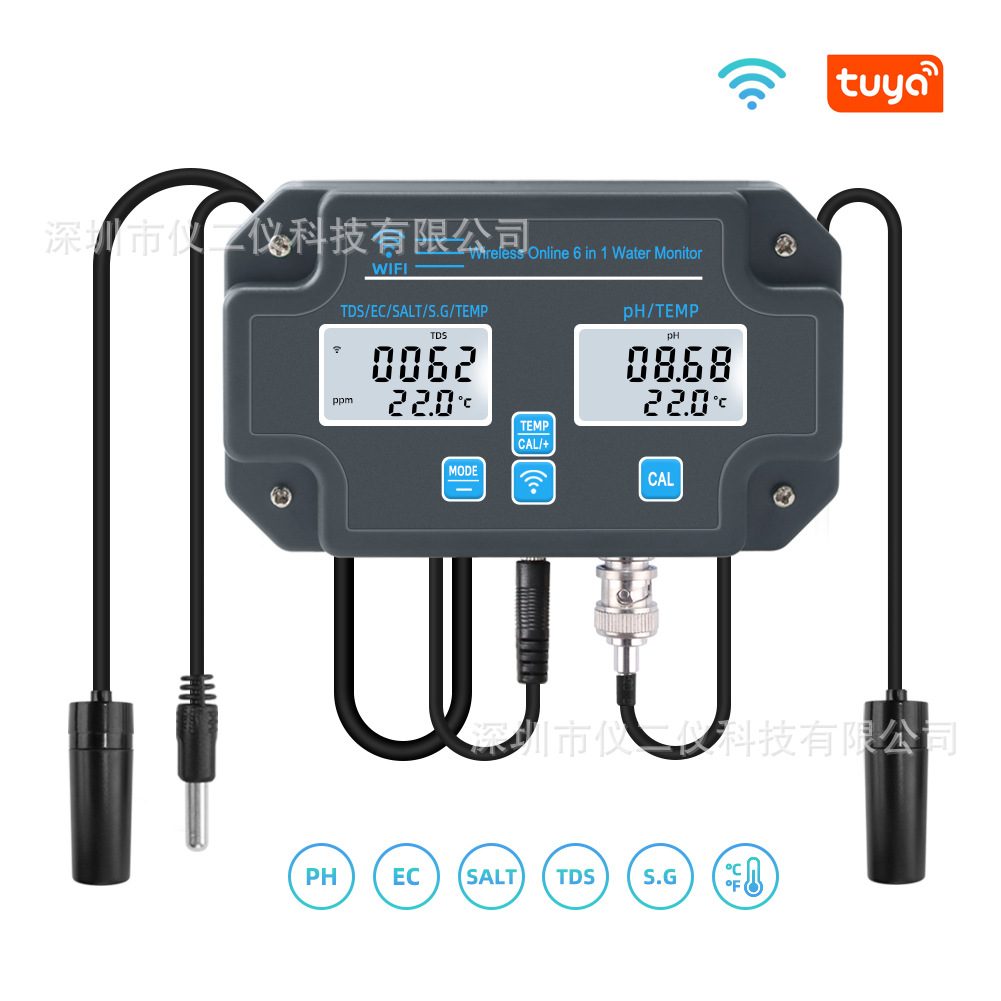 Graffiti WIFI detektor online 6-in-1 tampilan digital Ph TDS/EC salinitas tangki ikan air laut tester pembiakan