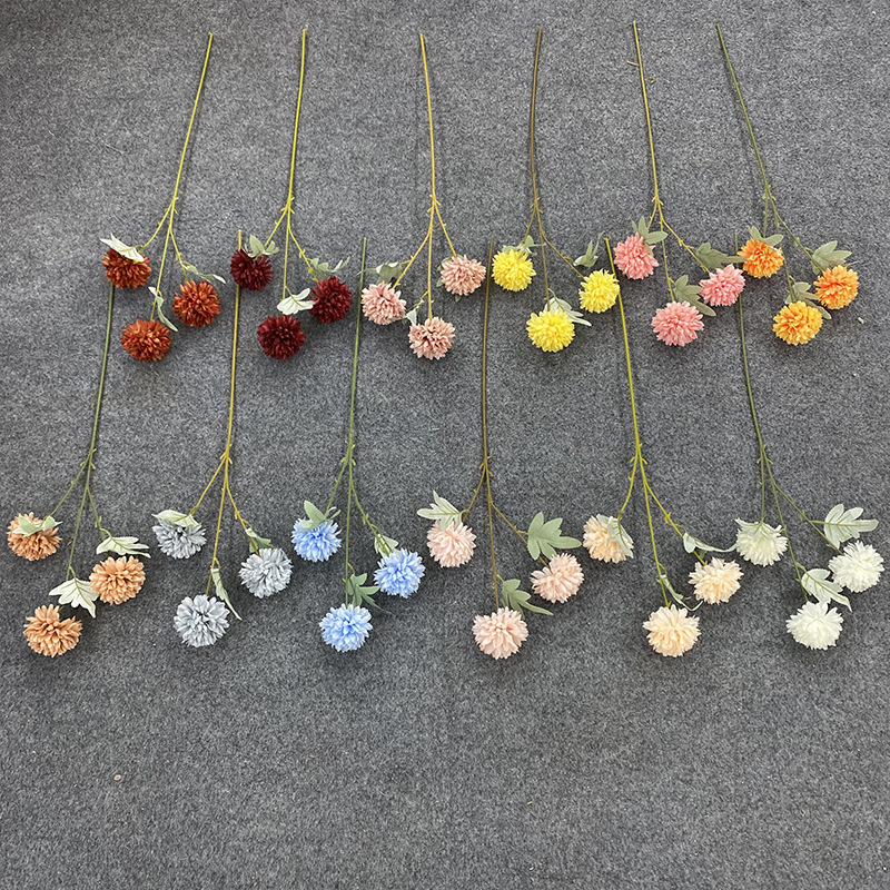 Bunga buatan grosir dekorasi pernikahan 3-kepala tenis meja krisan dandelion tampilan rumah bunga palsu pernikahan buatan