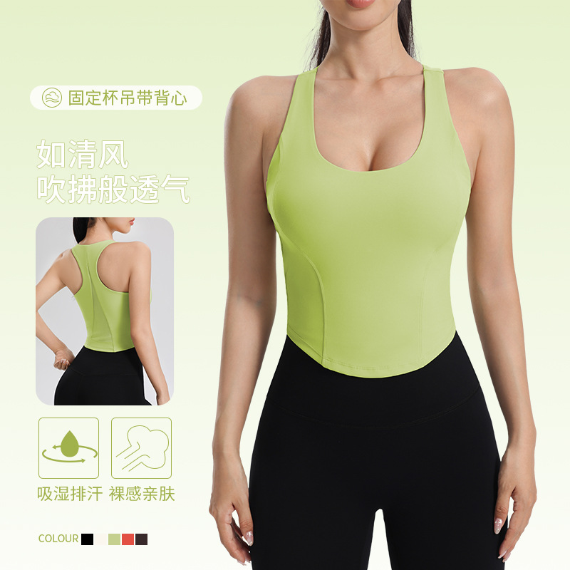 U型运动内衣女一体式文胸固定杯高强度防震跑步速干健身瑜伽背心