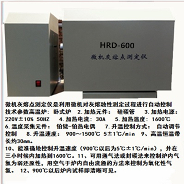 Penguji titik peleburan abu mikrokomputer mengadopsi pengukuran dan kontrol, perangkat lunak dan teknologi kamera untuk secara otomatis menyelesaikan tes fusiensi abu Batu Bara