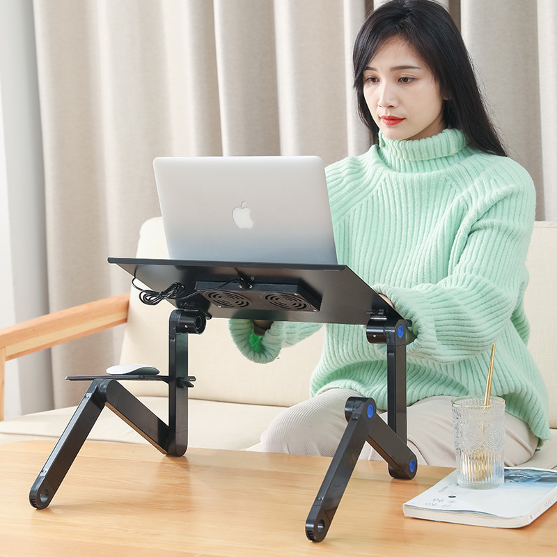 Meja laptop pendingin multifungsi, dudukan komputer lipat meja malas kantor