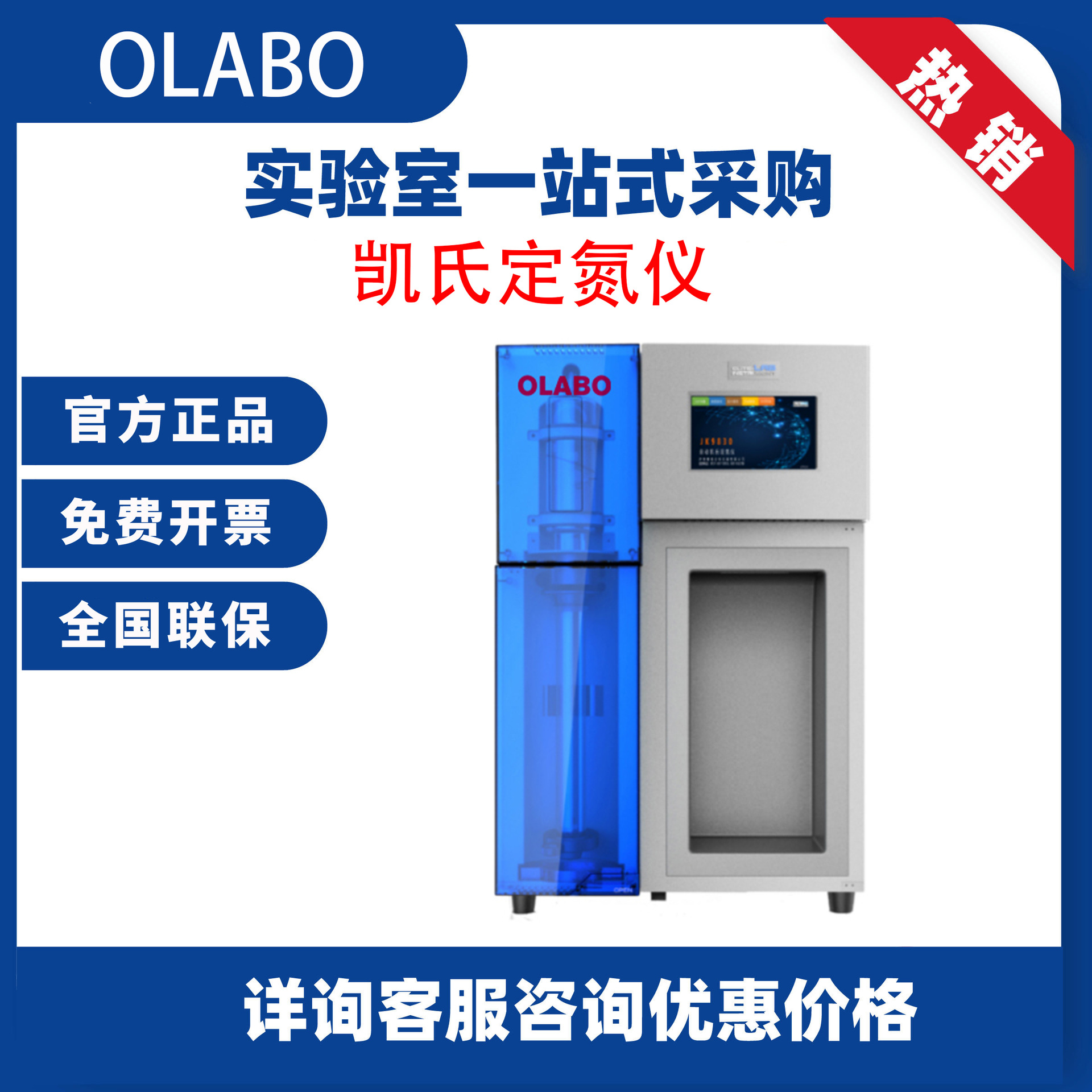 Olaibo 9830 Kjeldahl penghilang protein, penganalisis protein untuk makanan, industri kimia otomatis Kjeldahl nitrogen