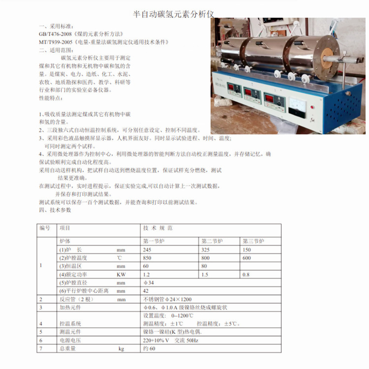 Penguji hidrokarbon tiga tungku mendeteksi kandungan karbon dan hidrogen dalam bahan seperti batu bara organik