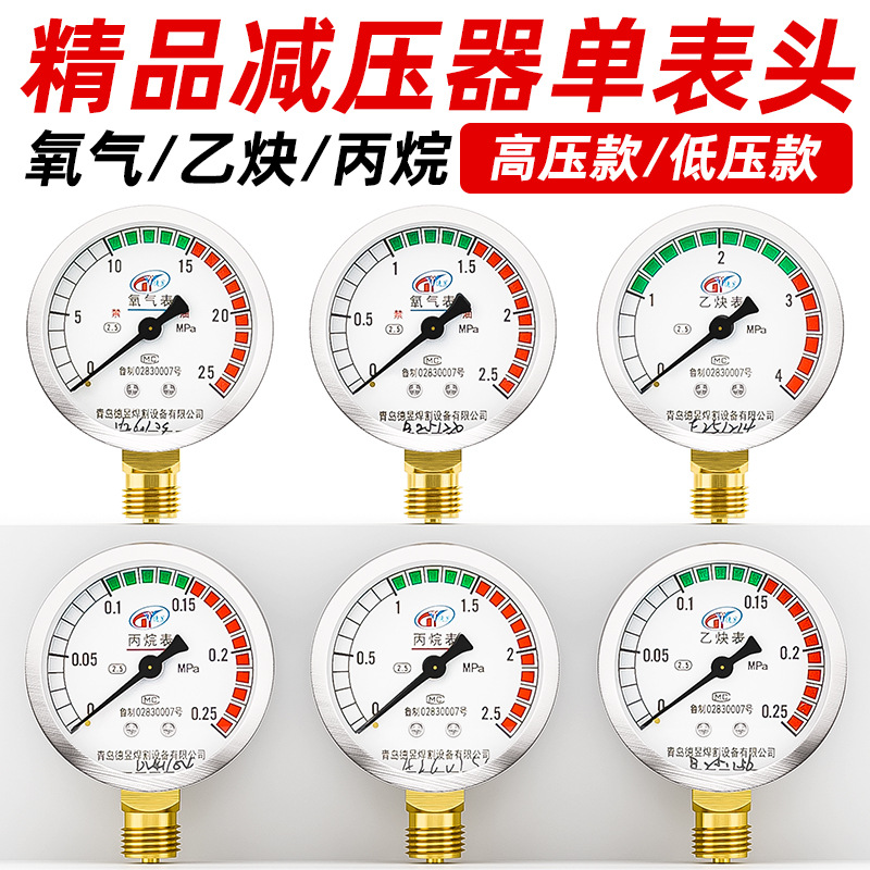 Meteran oksigen pengurang tekanan, kepala pengukur oksigen asetilen propana meter gas tekanan tinggi meteran tekanan rendah Aksesori katup penurun tekanan