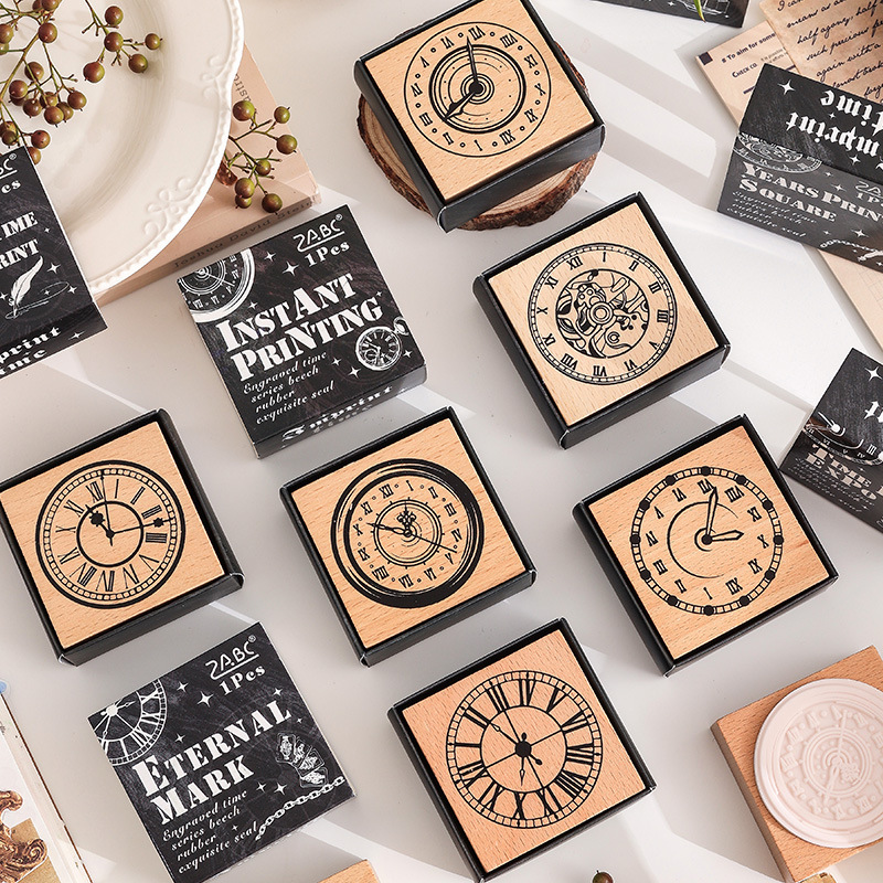 Yuezhen Segel Berukir Segel Kayu Waktu Segel Tangan Segel Kayu Beech Retro Lintas Batas Segel Jam Segel Tangan