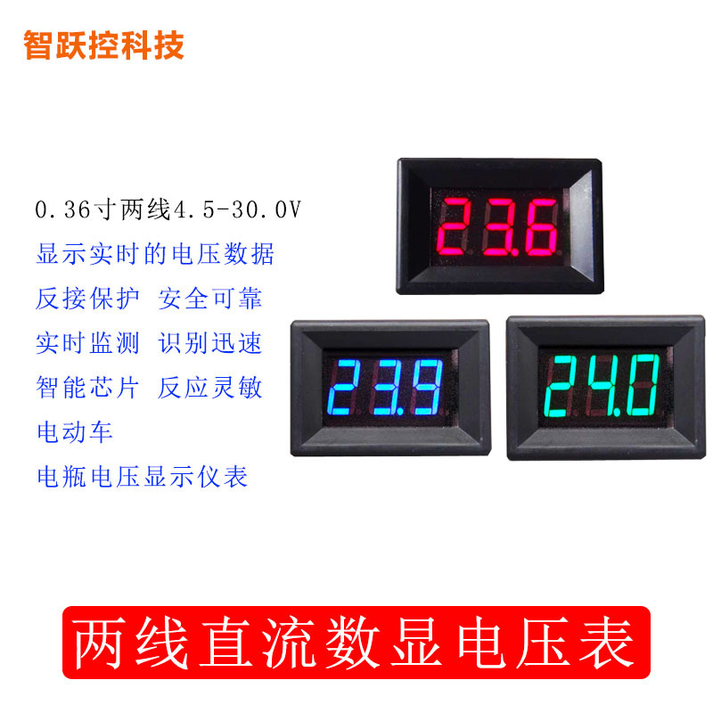Dengan casing 0,36 inci dua kabel 4.5-30V voltmeter tampilan digital voltmeter digital terbalik
