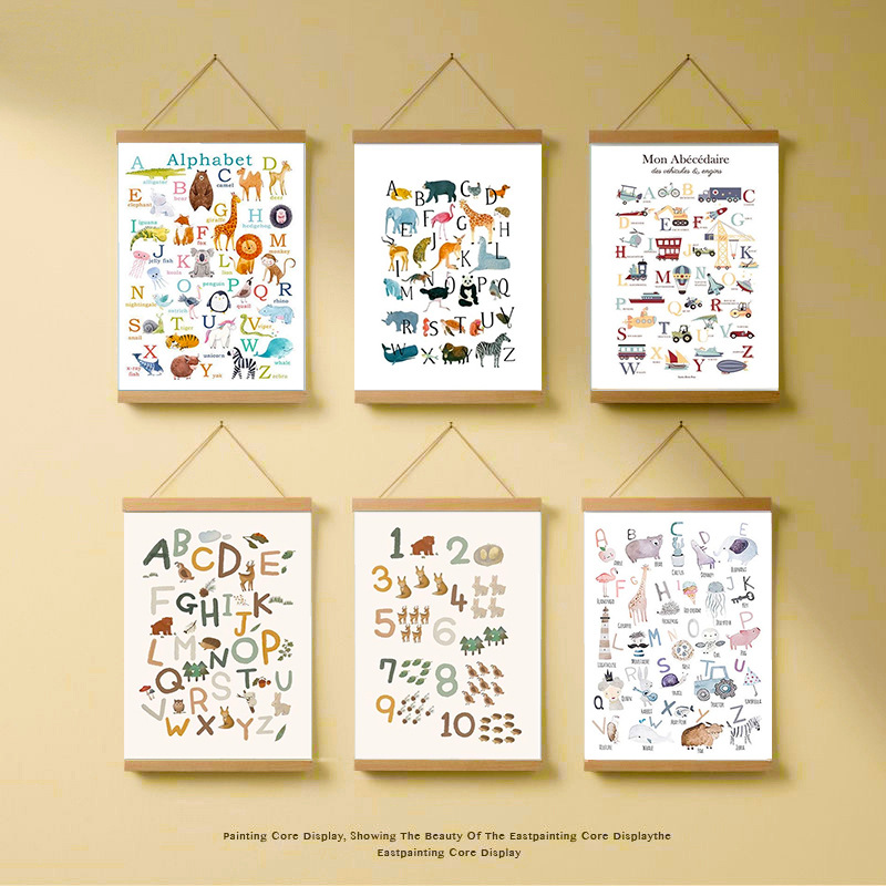 Lukisan Gantung Lucu Gaya INS Eropa Utara Lukisan Hias Kamar Tidur Anak-Anak Kartun Hewan Kotak Alfabet Ruang Tamu Penutup