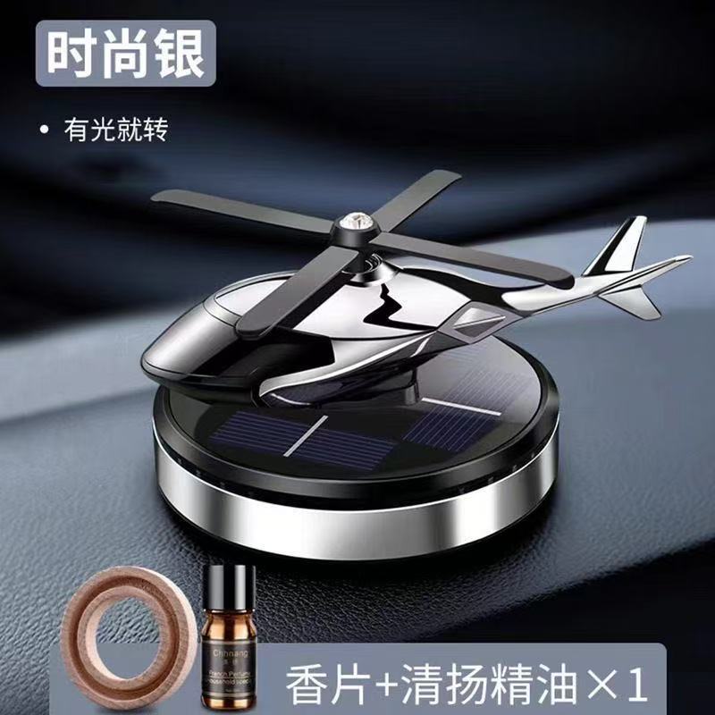 太阳能旋转直升机车载摆件飞机香薰中控台跨境汽车除异味香水用品