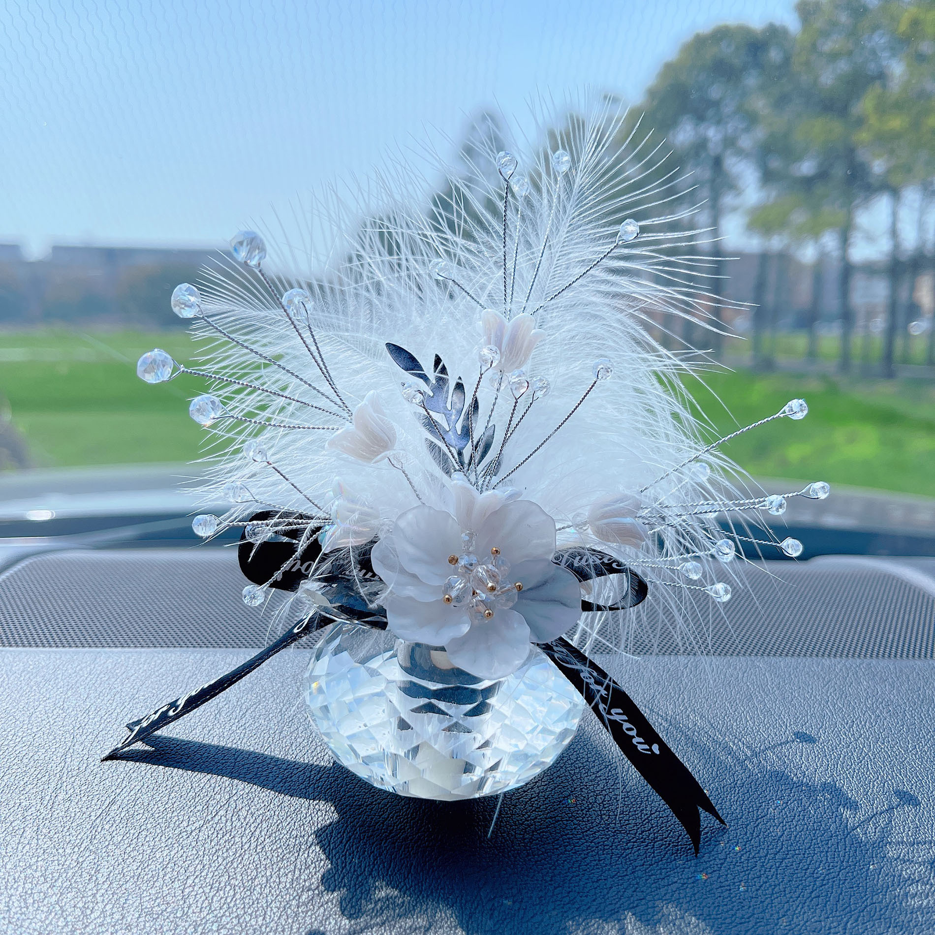 [Bulu bunga] dekorasi mobil, bunga, bulu, dekorasi konsol tengah mobil, perlengkapan mobil kristal meja wanita