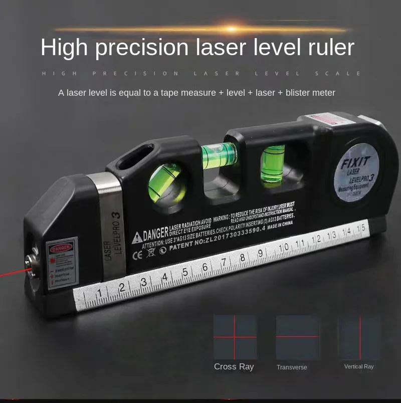 跨境LV03多功能激光水平尺塑料底座红外线水平仪标线高精度测量仪