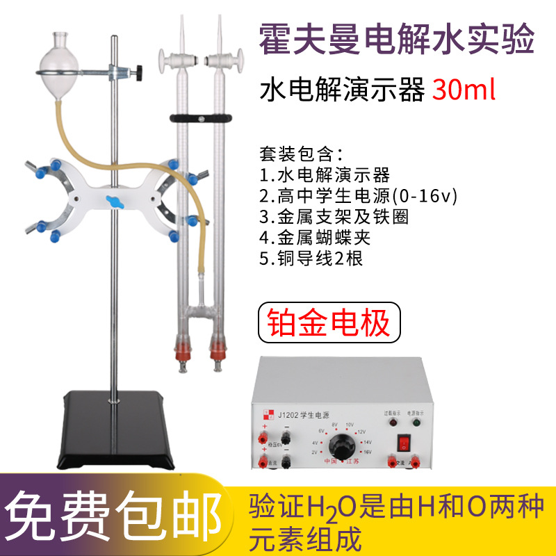 Penguji elektrolisis air timbal elektrolisis, elektroda platinum 30/60ml, peralatan pengajaran platinum J26001