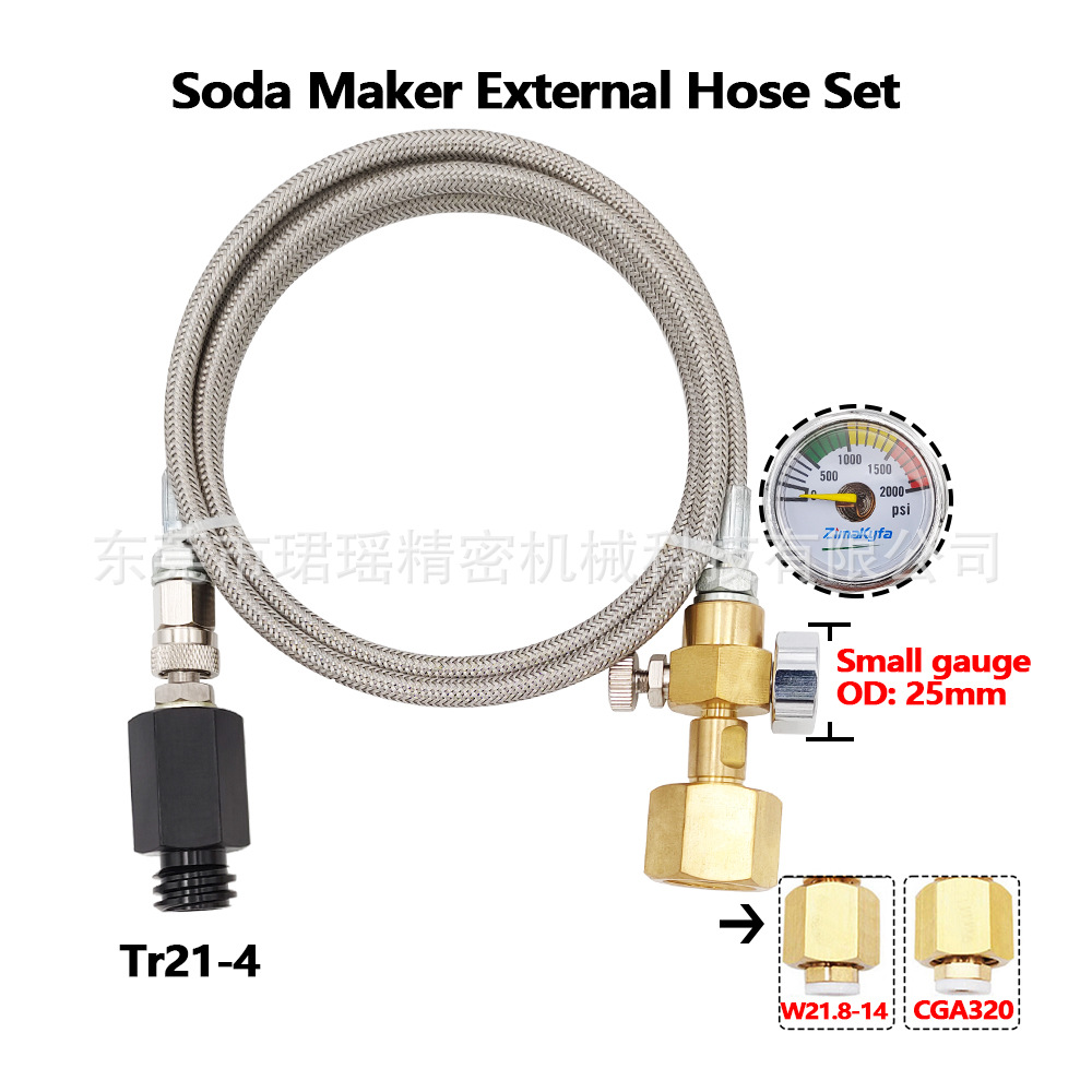 Mesin air gelembung soda tabung luar baja tahan karat lintas batas pipa udara penghubung botol besar dengan pengukur tekanan 2000psi