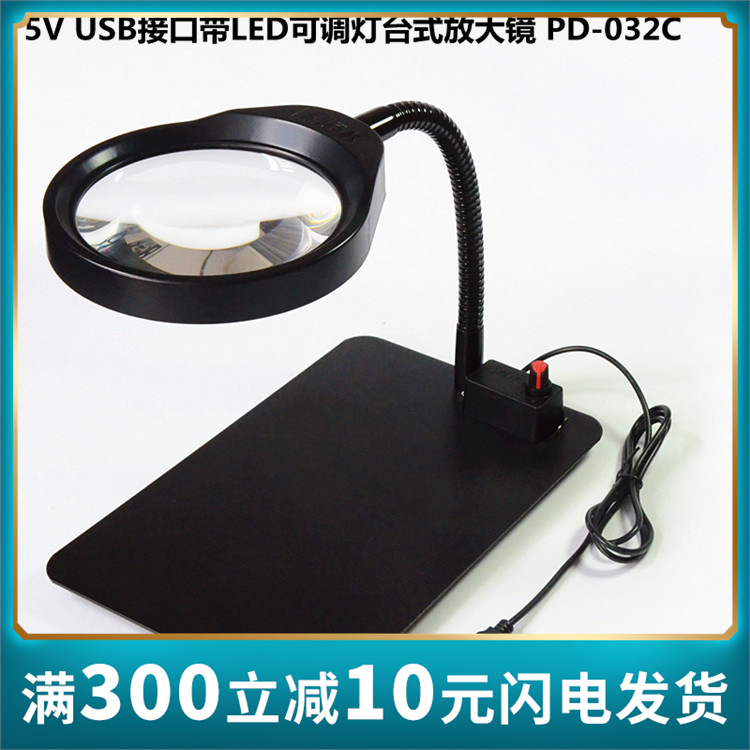 PDOK PD-032C desktop kaca pembesar untuk orang tua, kaca pembesar Baca ponsel perbaikan pengelasan 10 kali dengan lampu 20 kali HD