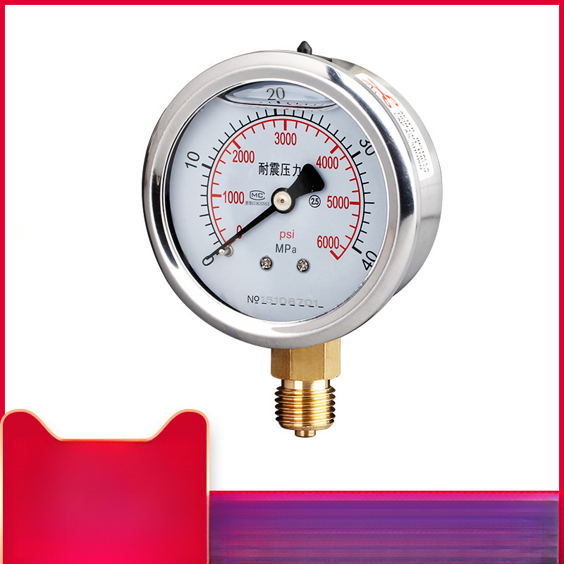 Pengukur tekanan YN50ZV, pengukur tekanan hidrolik braket aksial tahan guncangan 0-1, 6mpa, tekanan udara