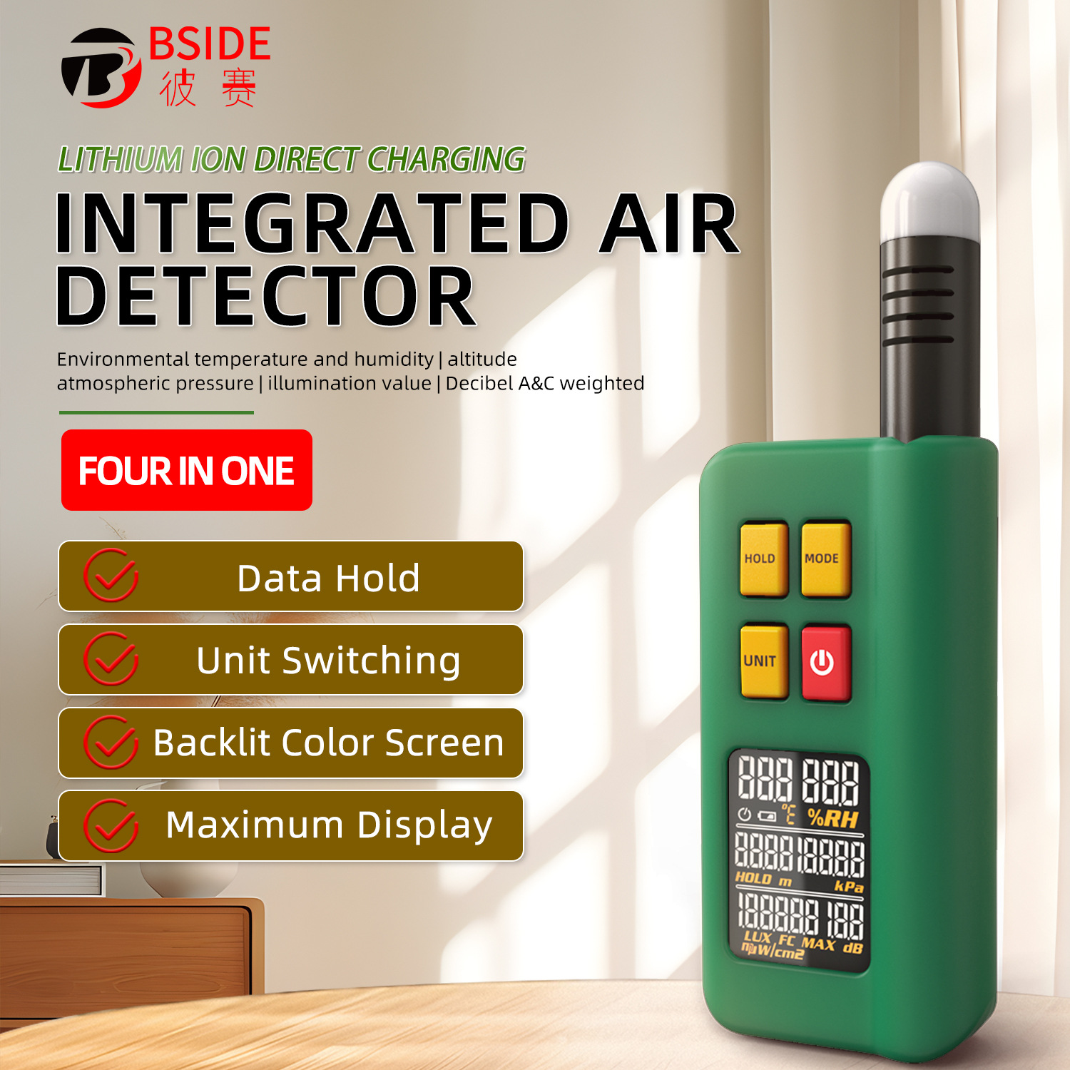 Detektor lingkungan komprehensif GX1 detektor kebisingan ketinggian pencahayaan Kelembaban Suhu