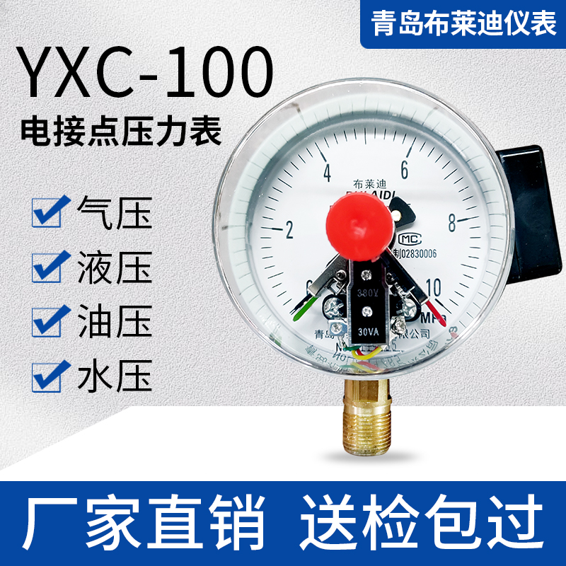 YXC-100 Brady Hidrolik Hidrolik Hidrolik Magnet Dukungan Listrik Pengukur Tekanan Semua Tahan Karat Tahan Guncangan Vakum