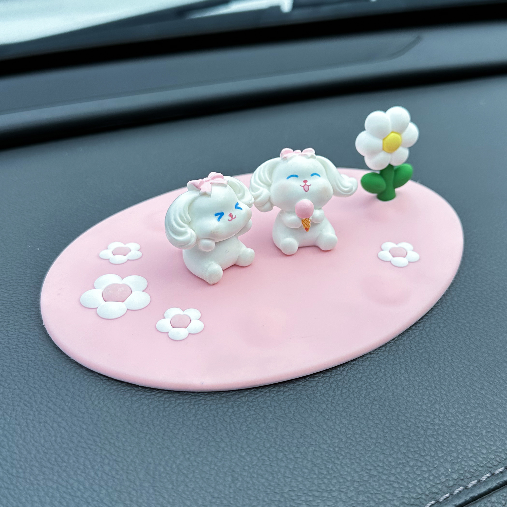 创意花朵彩虹四叶草粉色小花垫子装饰桌面汽车中控台小摆件防滑垫