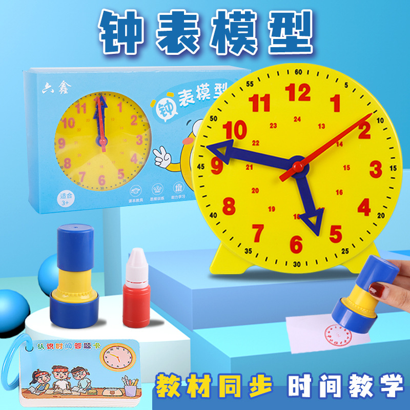 Model Jam setelan jam sekolah dasar, alat bantu mengajar kelas pertama dan kedua, pembelajaran matematika, waktu pemahaman, model tombol wajah
