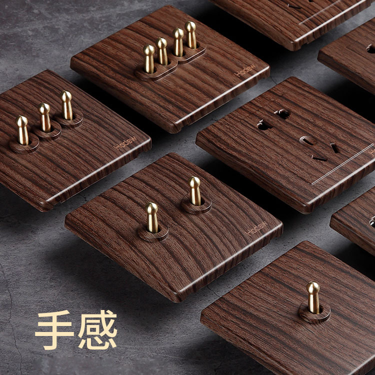 Soket saklar kualitas tinggi retro panel saklar warna butiran kayu tiongkok soket dekorasi rumah hotel restoran tema amerika