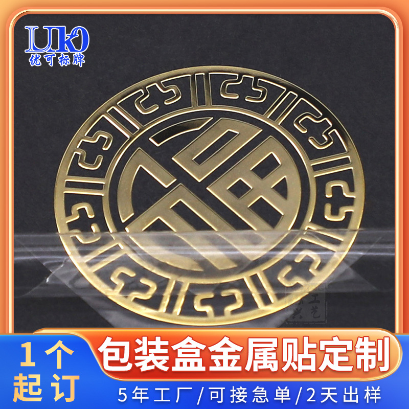 Pabrik Elektroforming High-end Kotak Kemasan Pelabelan Dekoratif Lembar Nikel Pelapis Emas Kotak Pameran Kotak Kacamata Pelabelan Logam Pelabelan Label
