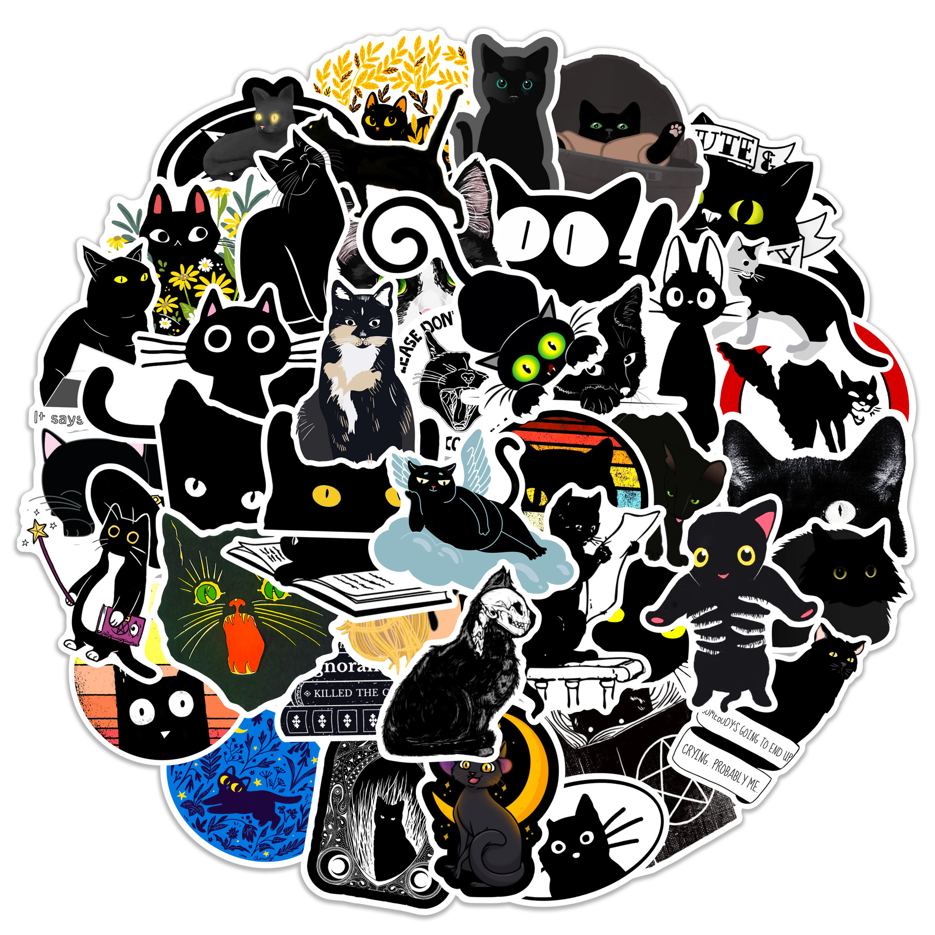 50 stiker grafiti kucing hitam lucu baru helm gitar komputer casing troli stiker tahan air dapat dilepas non-berulang