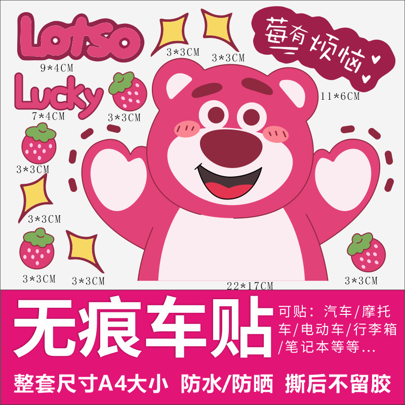Stiker kartun beruang stroberi stiker sepeda motor elektrik helm lucu stiker casing ponsel laptop dekoratif