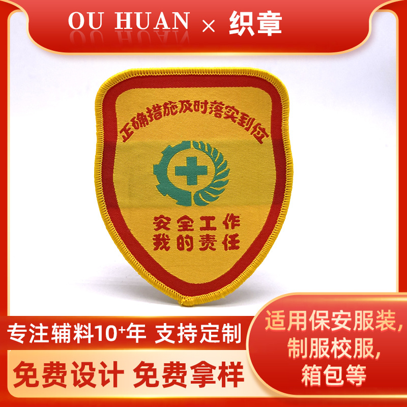 Pasokan komputer tenun lencana ban lengan bengkel pakaian kerja keselamatan petugas ban lengan lencana ban lengan Velcro label Tepi kunci