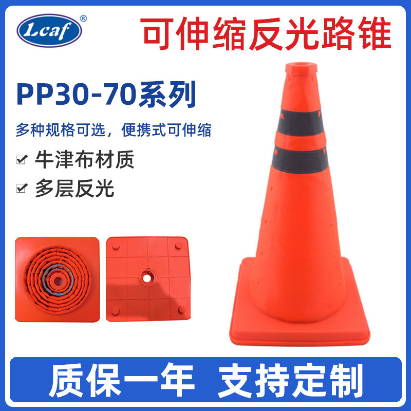 Kerucut jalan dapat ditarik dasar PP/ABS kerucut pembatas jalan reflektif lipat portabel iklan jalan kerucut peringatan darurat keamanan Lalu Lintas