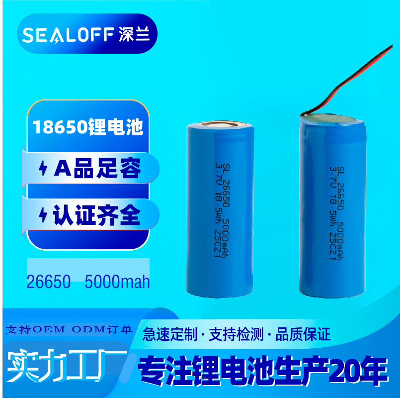 Daya tinggi 26650 baterai lithium 5000mah kapasitas besar 3.7V plus papan garis isi ulang baterai 18650