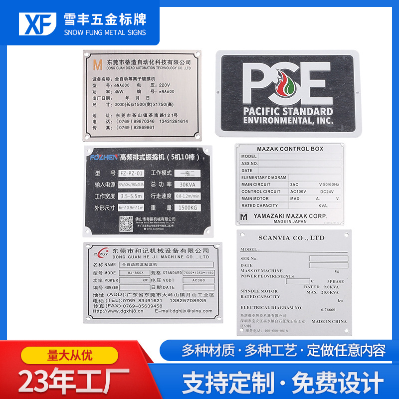 Pasokan perlengkapan logam besi tahan karat aluminium tanda peralatan disesuaikan papan nama