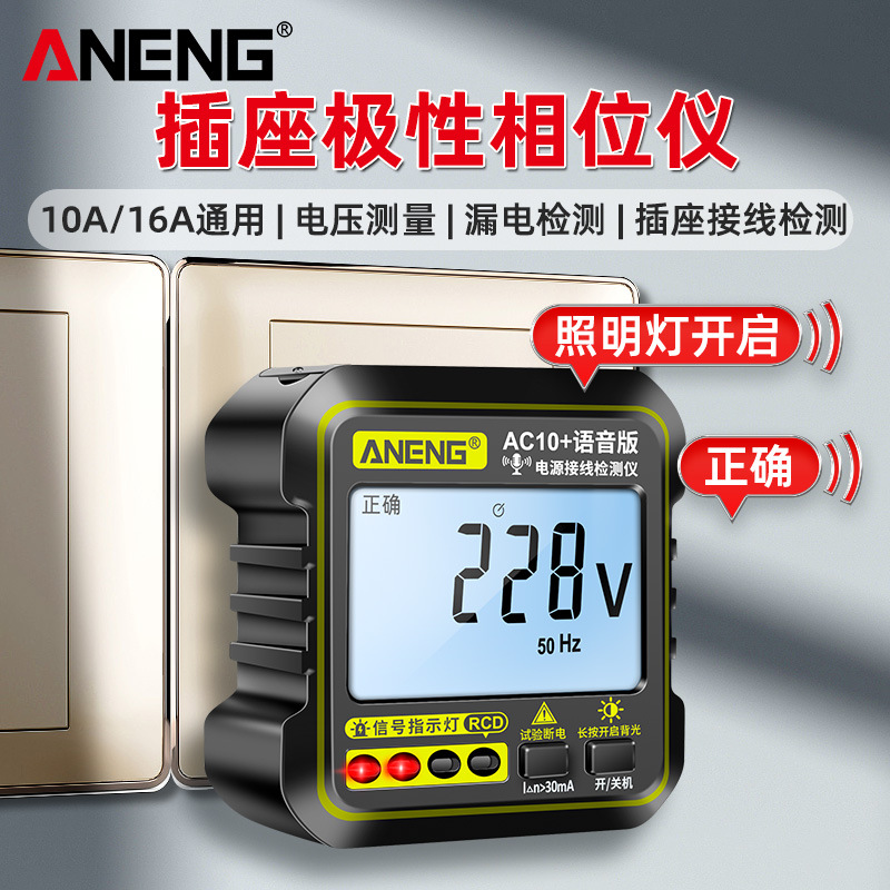 ANENG detektor fase soket suara multifungsi, detektor fase elektrik tanpa api kawat tanah, deteksi kebocoran