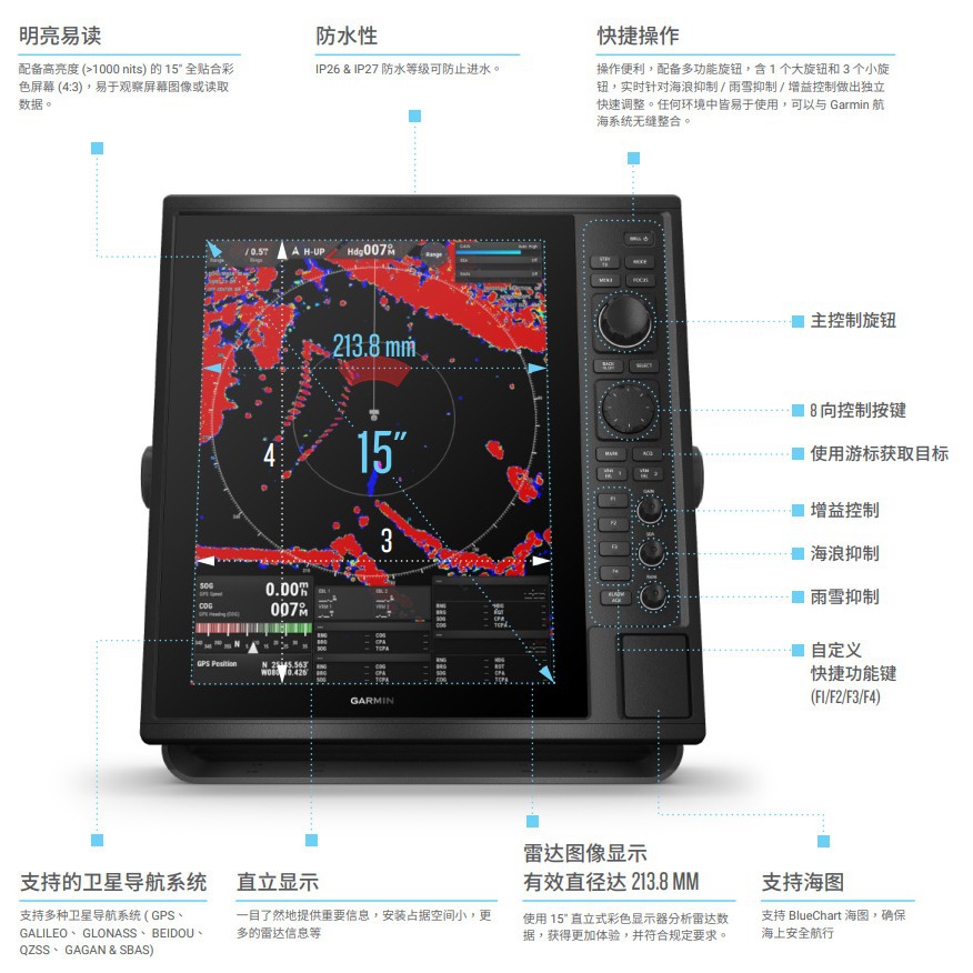 Garmin Jiaming cr1522 radar laut, radar laut tepi antena CCS4kw tampilan 15 inci