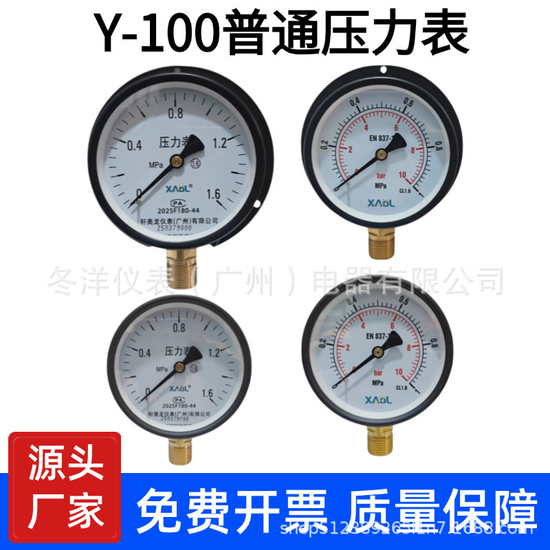 Pengukur tekanan vakum cangkang besi hitam Y-100 pengukur tekanan YC-100T kapal 0.6/1/6/2/2.5MPA