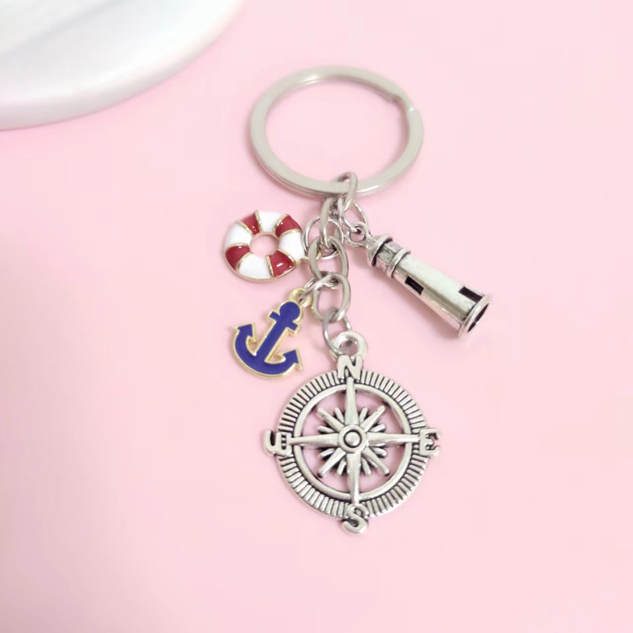 Cross-border kompas navigasi terlaris bentuk jangkar cincin baja titanium netral stok tersedia satu buah pengiriman