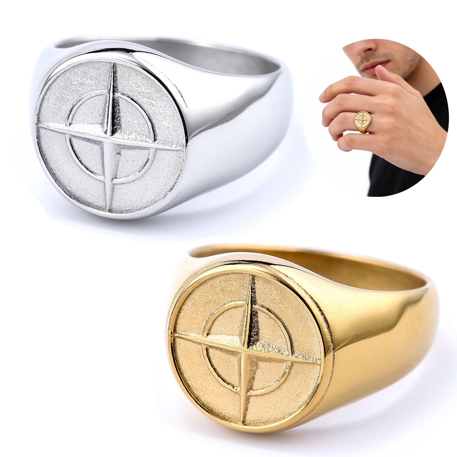 Beier forcial trade kompas retro cincin baja titanium pria Eropa dan Amerika lempar baja tahan karat cincin jangkar dalam stok