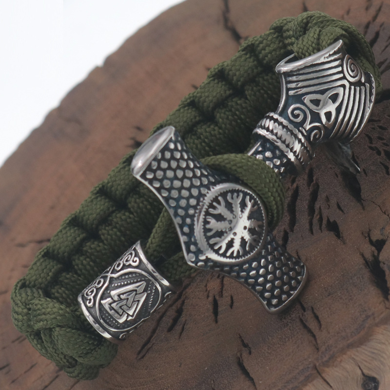 Kompas totem aoding jangkar baja nirkarat payung tali gelang Eropa dan Amerika populer Celtic Segitiga manik-manik gelang