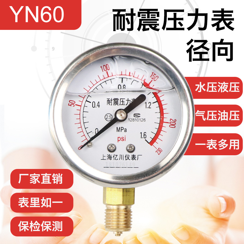 Yn60 pengukur tekanan hidrolik, pengukur tekanan udara, vakum negatif, kompresor udara 0-1.6, tekanan hidrolik, 2,5 MPa