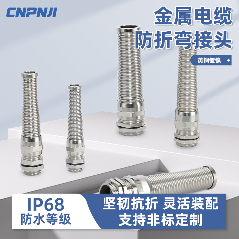 Konektor Tahan Air Logam Anti-Lipat M12 Pipa Sambungan Musim Semi Lembut Tahan Twist Kabel PG13.5 Kepala Gran Tetap