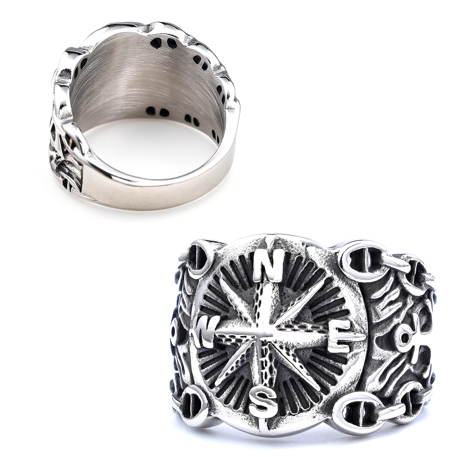 Nordic cross-border navigasi terlaris logo Kompas bentuk cincin baja titanium jangkar cincin hitam dalam persediaan