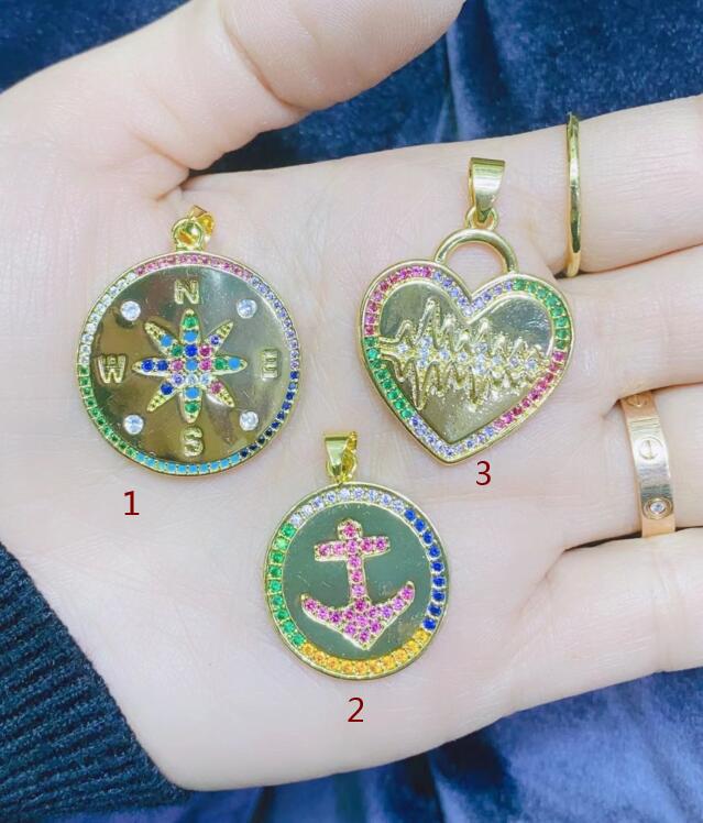 Micro-bertatahkan 14K warna berlapis emas, perhiasan kalung liontin hati persik kompas jangkar zirkonium warna zirkon pemeliharaan warna mikro