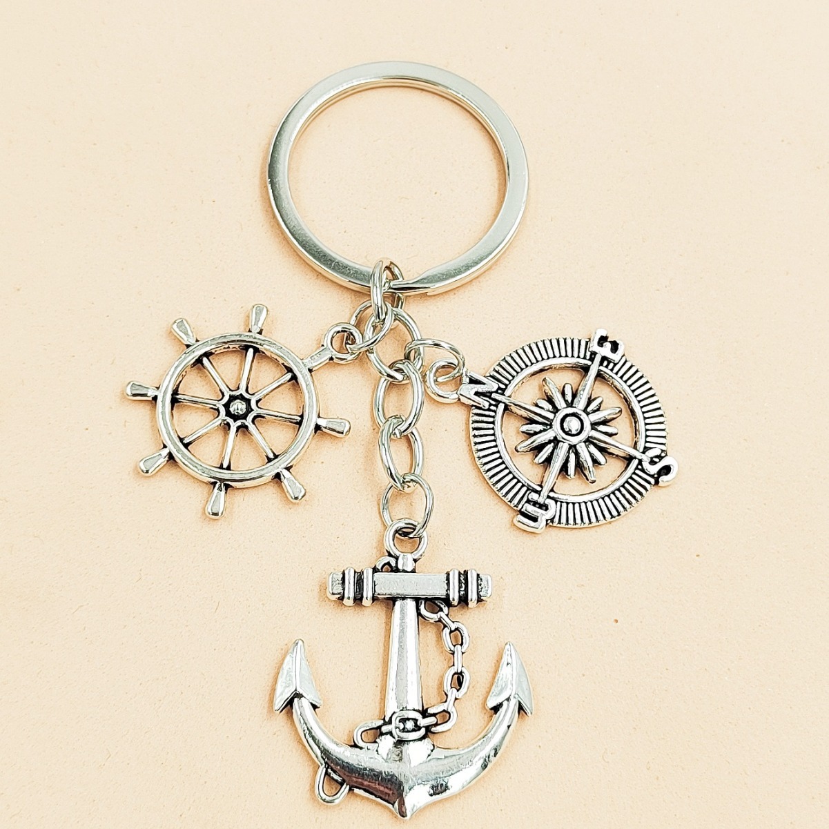 AliExpress gantungan kunci Eropa dan Amerika kasual jangkar kemudi kompas gantungan kunci logam Aksesori liontin