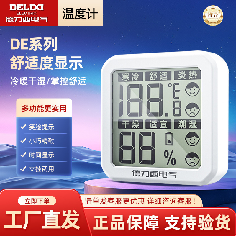 Delixi termometer higrometer mini presisi tinggi listrik dalam ruangan rumah kamar bayi dipasang di dinding DE31/K